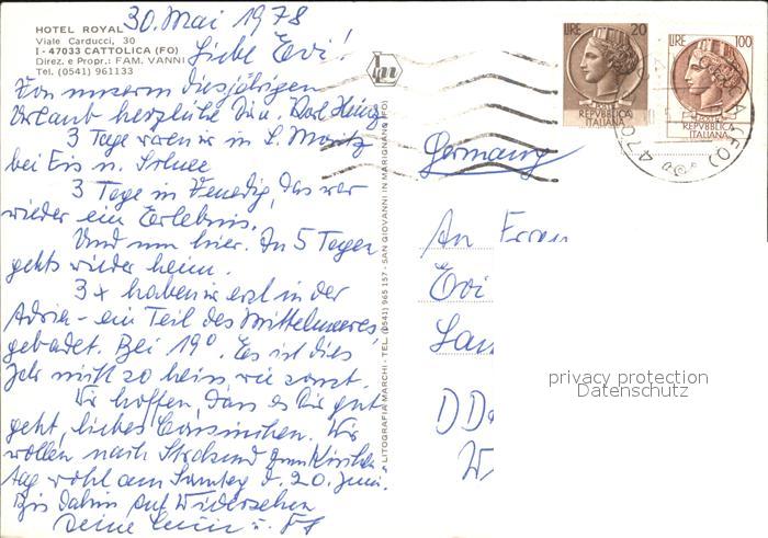 old postcard Cattolica Rimini Hotel Royal postalisch gelaufen Erhaltung siehe scans