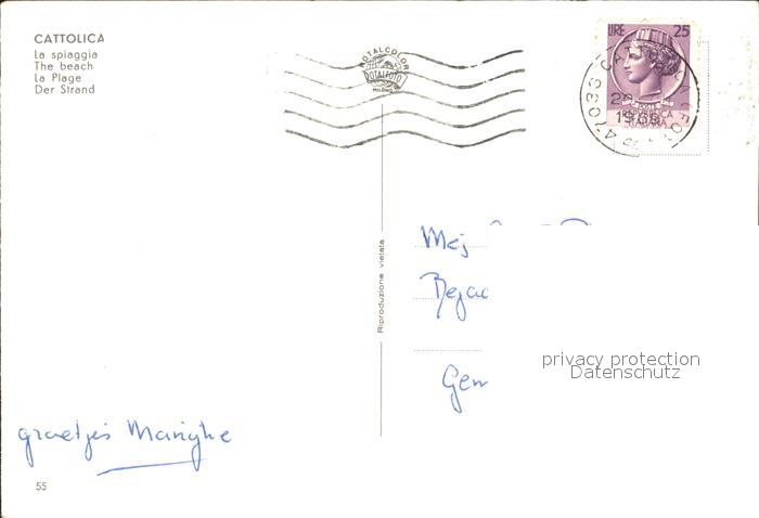 old postcard Cattolica Rimini La Spiaggia postalisch gelaufen Erhaltung siehe scans