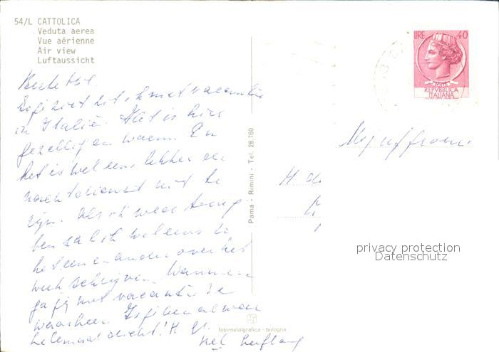 old postcard Cattolica Rimini Luftaufnahme postalisch gelaufen Erhaltung siehe scans [KathaD79]