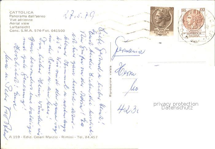 old postcard Cattolica Rimini Ortsansichten Luftaufnahme postalisch gelaufen Erhaltung siehe scans