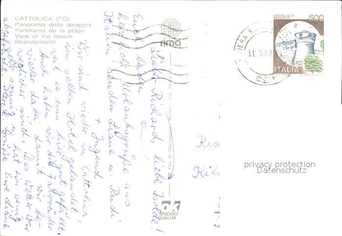 old postcard Cattolica Rimini Panorama della spiaggia Strand postalisch gelaufen Erhaltung siehe scans