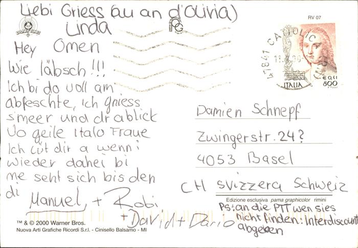 old postcard Cattolica Rimini Panorama Riviera Adriatica Spaggia Porto Strand Hafen Karikatur postalisch gelaufen Erhaltung siehe scans