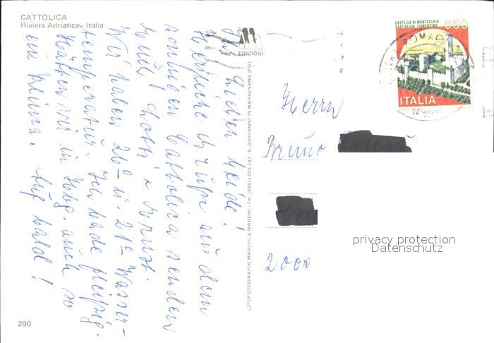 old postcard Cattolica Rimini Panorama Riviera Adriatica Spiaggia Porto Hafen Strand Feuerwerk postalisch gelaufen Erhaltung siehe scans