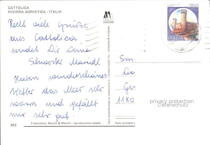 old postcard Cattolica Rimini Personenschiff Hafen Gesantansicht Strand postalisch gelaufen Erhaltung siehe scans