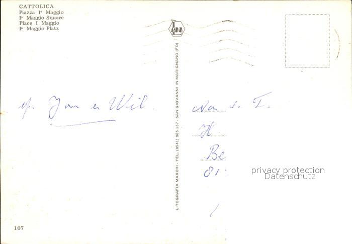 old postcard Cattolica Rimini Piazza I Maggio postalisch gelaufen Erhaltung siehe scans
