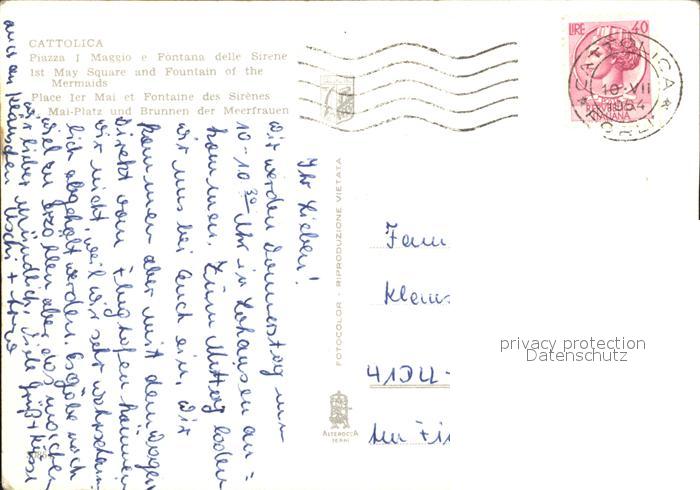 old postcard Cattolica Rimini Piazza i Maggio e Ponta delle Sirene postalisch gelaufen Erhaltung siehe scans