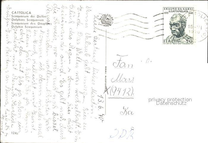 old postcard Cattolica Rimini Seaquariu dei Delfini Panorama postalisch gelaufen Erhaltung siehe scans