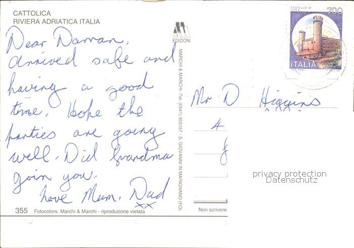 old postcard Cattolica Rimini Segelboot Strand postalisch gelaufen Erhaltung siehe scans