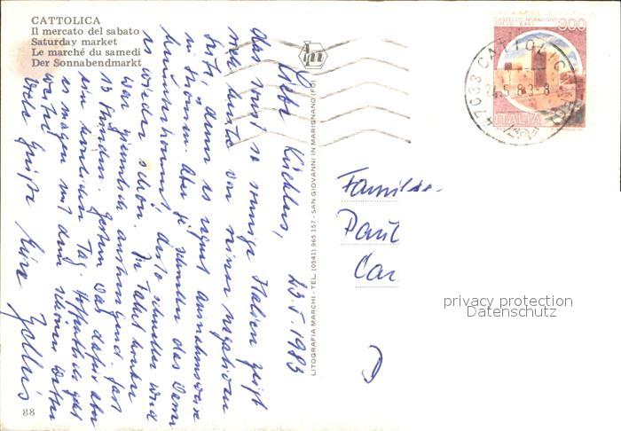 old postcard Cattolica Rimini Sonnabendmarkt Brunnen Kirche postalisch gelaufen Erhaltung siehe scans
