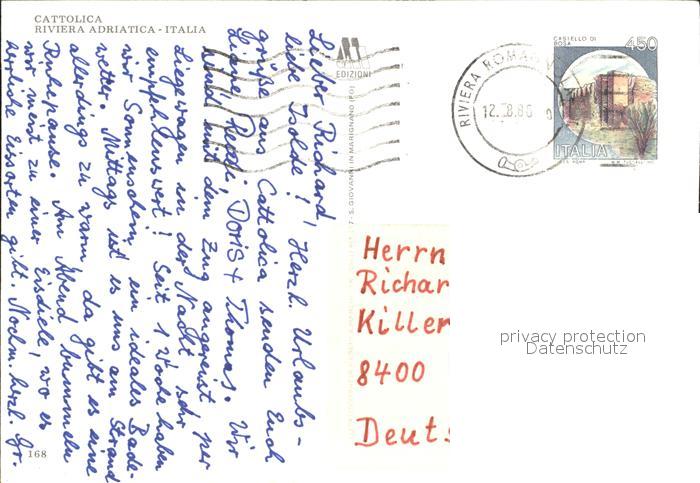 old postcard Cattolica Rimini Spiaggia Riviera Adriatica Strand postalisch gelaufen Erhaltung siehe scans