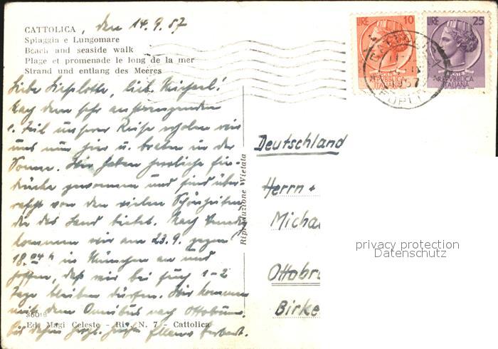 old postcard Cattolica Rimini Strand postalisch gelaufen Erhaltung siehe scans