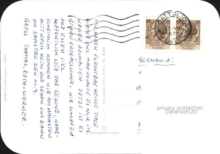 old postcard Cattolica Rimini Strand postalisch gelaufen Erhaltung siehe scans