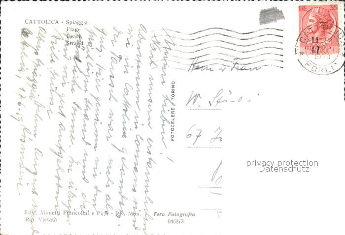 old postcard Cattolica Rimini Strand postalisch gelaufen