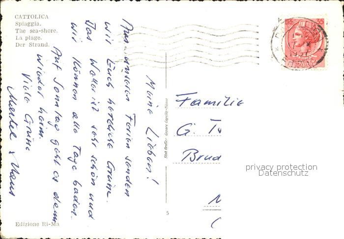 old postcard Cattolica Rimini Strand postalisch gelaufen Erhaltung siehe scans