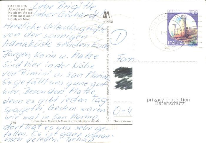 old postcard Cattolica Rimini Strand Hotels postalisch gelaufen Erhaltung siehe scans