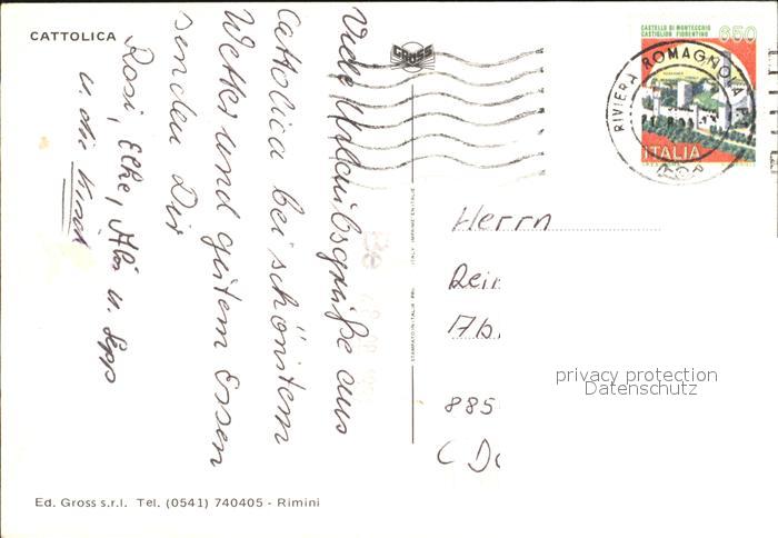 old postcard Cattolica Rimini Strand Sonnenuntergang Segelboot postalisch gelaufen Erhaltung siehe scans