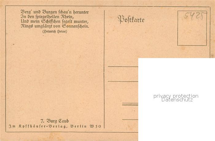 43348914 Caub Burgen Kuenstlerkarte postalisch nicht gelaufen Erhaltung siehe scans [KathaD81] KatCode: 11110007141069