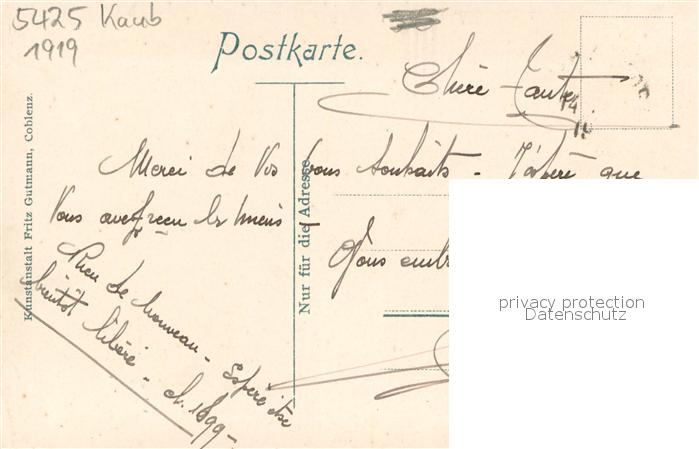 73696231 alte Postkarte Caub Rheinpanorama mit der Pfalz postalisch gelaufen Erhaltung siehe scans [WerneD78] KatCode: 11110007141069