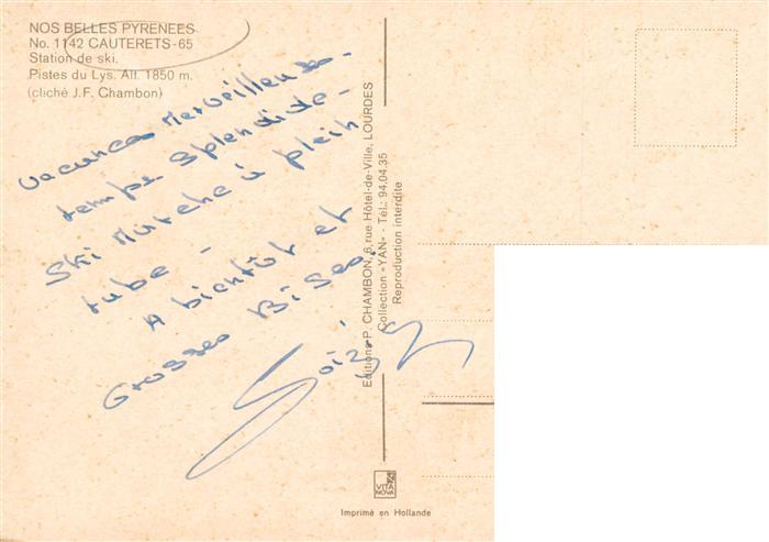 13942779 Cauterets 65 Hautes-Pyrenees Station de ski Pistes du Lys postalisch nicht gelaufen Erhaltung siehe scans [FriedD77] Frie Katcode 11170065165138