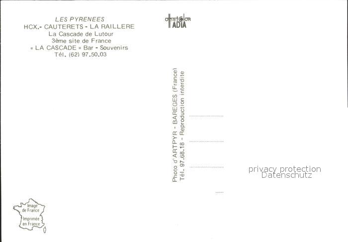 12270673 Cauterets La Raillere La Cascade Bar Souvenirs Cascade de Lutour postalisch nicht gelaufen Erhaltung siehe scans KatCode: 11170065165138