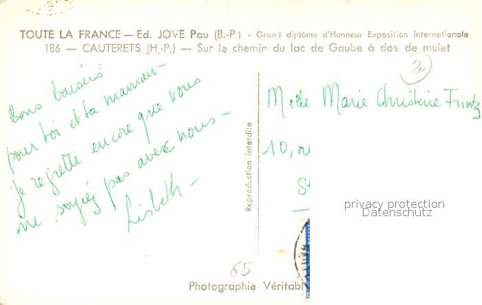13483321 carte postale Cauterets Sur le Chemin du Lac de Gaube a dos de mulet Pyrénées postalisch gelaufen Erhaltung siehe scans [FriedD77] KatCode: 11170065165138