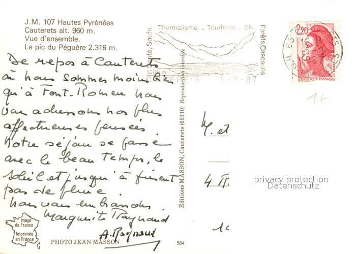 13213492 carte postale Cauterets Vue d’ensemble Le pic du Peguere postalisch gelaufen Erhaltung siehe scans [WerneD78] KatCode: 11170065165138