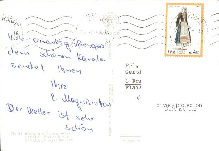 old postcard Cavala Kavala Teilansichten Springbrunnen Platz Nachtaufnahme postalisch gelaufen Erhaltung siehe scans
