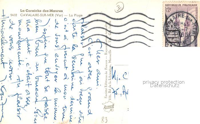 13484700 carte postale Cavalaire-sur-Mer La Plage Corniche des Maures postalisch gelaufen Erhaltung siehe scans [FriedD77] KatCode: 11170083183036