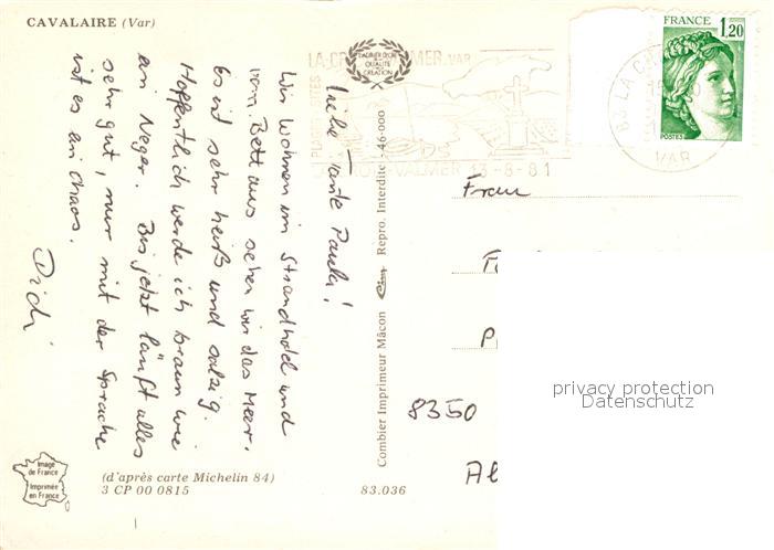 12947359 carte postale Cavalaire-sur-Mer Teilansichten Gebietskarte postalisch gelaufen Erhaltung siehe scans [WerneD78] KatCode: 11170083183036