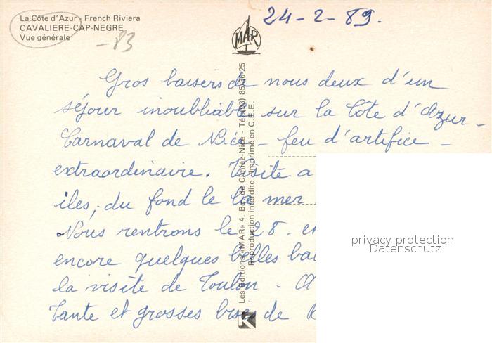 13786784 Cavaliere Cap Negre Côte d Azur vue aérienne postalisch nicht gelaufen Fliegeraufnahme Erhaltung siehe scans [FriedD77] Fliegeraufnahme Frie Katcode 11170083183119