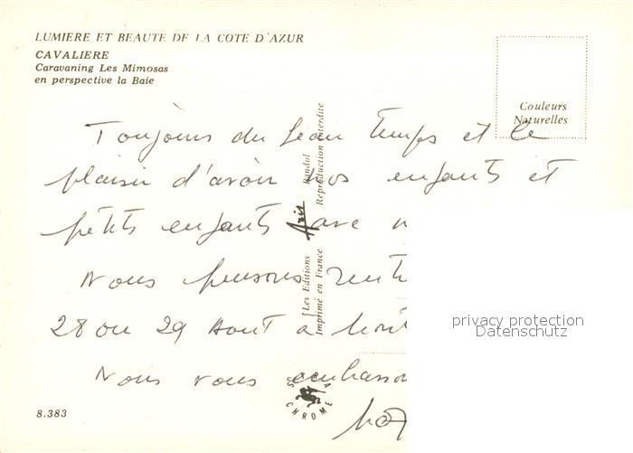 13545959 Cavaliere Caravaning Les Mimosas en perspective la Baie postalisch nicht gelaufen Erhaltung siehe scans [WerneD78] KatCode: 11170083183119