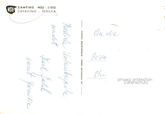 old postcard Cavallino Lido Venezia IT Camping NSU – Lido postalisch gelaufen Erhaltung siehe scans [LiesaD40]