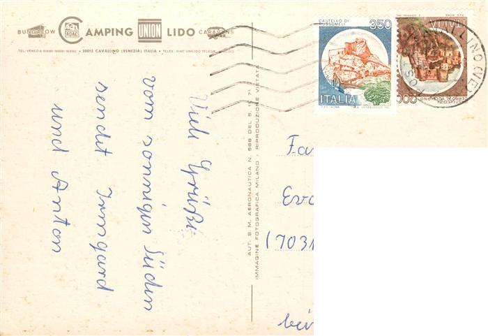 73899145 old postcard Cavallino Lido Venezia IT Camping Union Lido Turm postalisch gelaufen Erhaltung siehe scans [FriedD77] KatCode: 11240