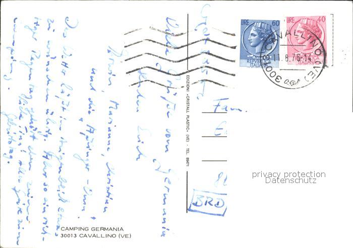 old postcard Cavallino-Treporti Camping Germania postalisch gelaufen Erhaltung siehe scans