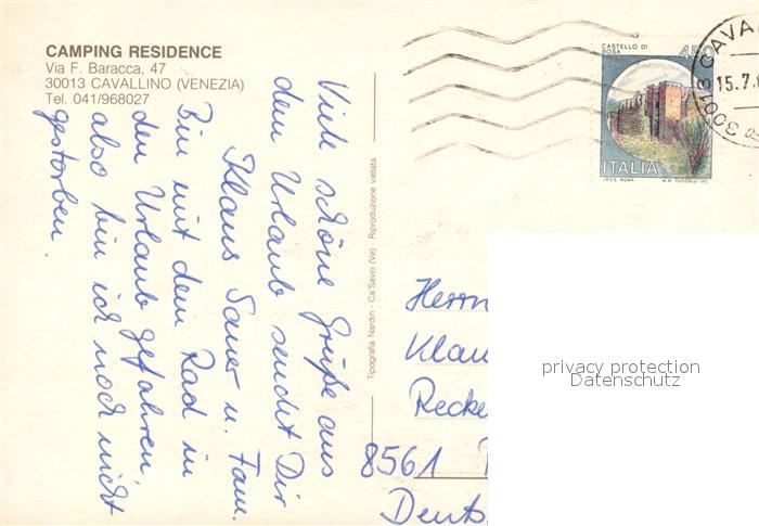 old postcard Cavallino-Treporti Camping Residence postalisch gelaufen Erhaltung siehe scans [PaolaD17]
