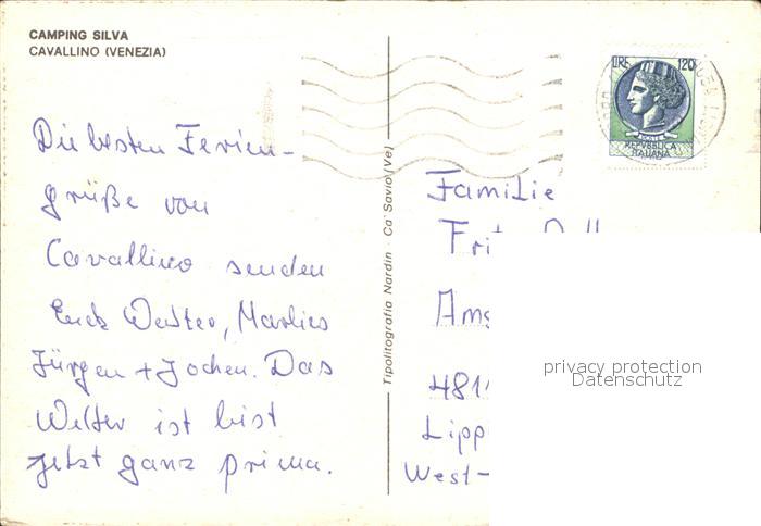 old postcard Cavallino-Treporti Camping Silva Br?cke in Venedig postalisch gelaufen Erhaltung siehe scans
