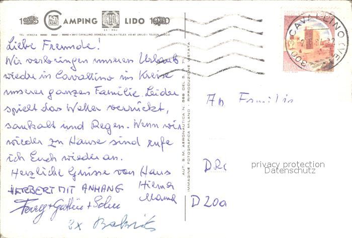 old postcard Cavallino-Treporti Fliegeraufnahme Strand und Camping Lido postalisch gelaufen Erhaltung siehe scans