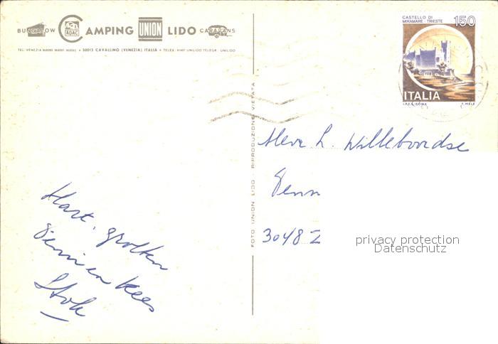 old postcard Cavallino Venezia Bungalow Camping Turm postalisch gelaufen Erhaltung siehe scans