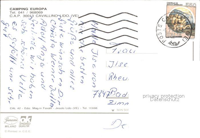 old postcard Cavallino Venezia Camping Europa postalisch gelaufen Erhaltung siehe scans