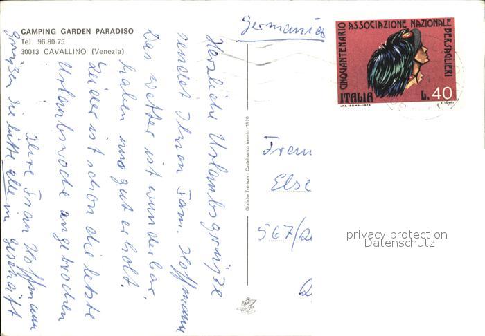 old postcard Cavallino Venezia Camping Garden Paradiso postalisch gelaufen Erhaltung siehe scans