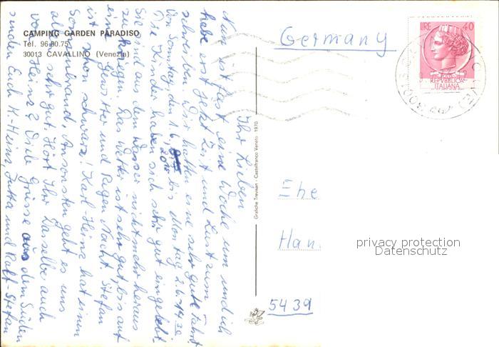 old postcard Cavallino Venezia Camping Garden Paradiso postalisch gelaufen Erhaltung siehe scans