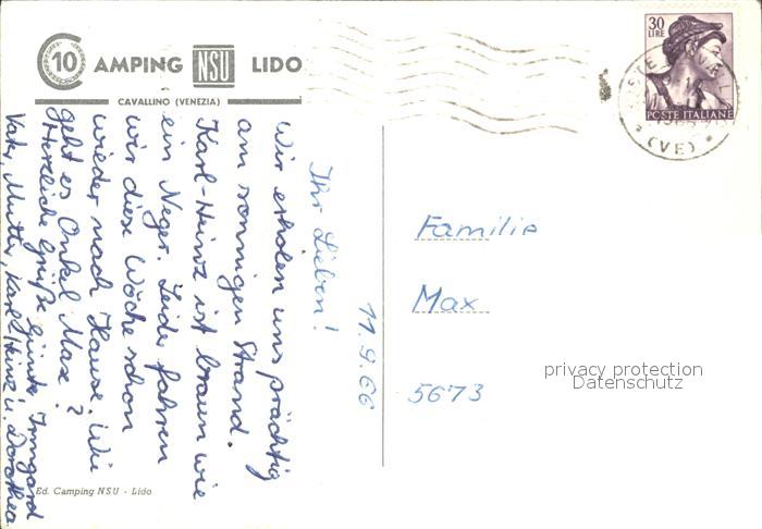 old postcard Cavallino Venezia Camping Lido postalisch gelaufen Erhaltung siehe scans