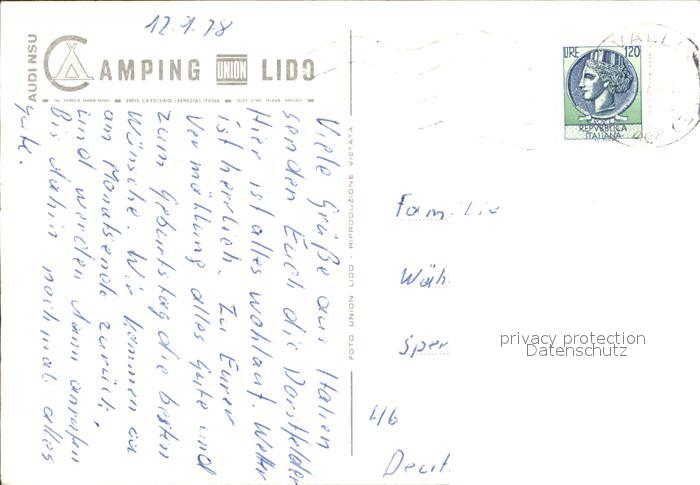 old postcard Cavallino Venezia Camping Lido postalisch gelaufen Erhaltung siehe scans