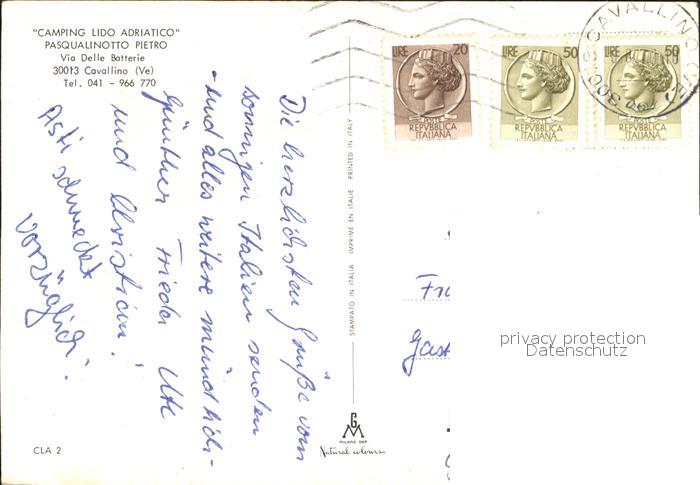 old postcard Cavallino Venezia Camping Lido Adriatico Strand postalisch gelaufen Erhaltung siehe scans
