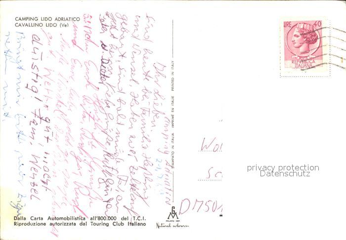 old postcard Cavallino Venezia Camping Lido Adriatico Strandpartieen Zeltplatz Lageplan postalisch gelaufen Erhaltung siehe scans