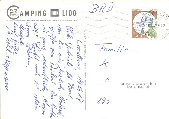 old postcard Cavallino Venezia Camping Lido Strand postalisch gelaufen