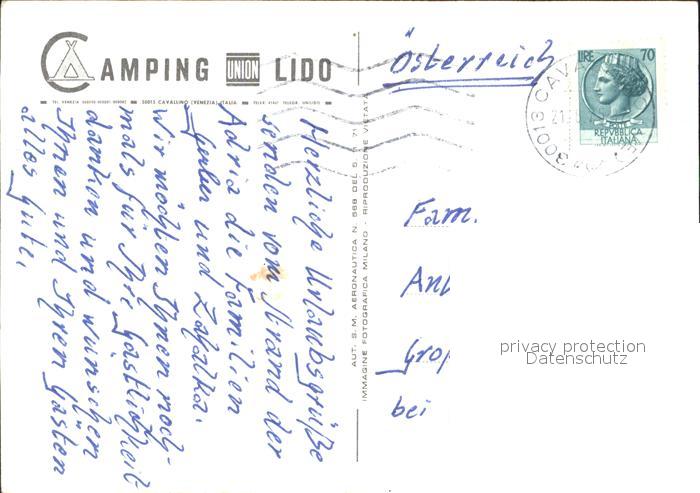 old postcard Cavallino Venezia Camping Lido Strand Fliegeraufnahme postalisch gelaufen Erhaltung siehe scans