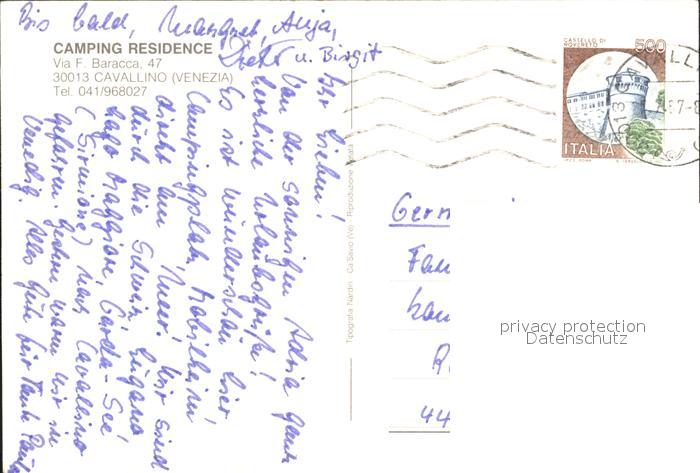 old postcard Cavallino Venezia Camping Residence postalisch gelaufen Erhaltung siehe scans