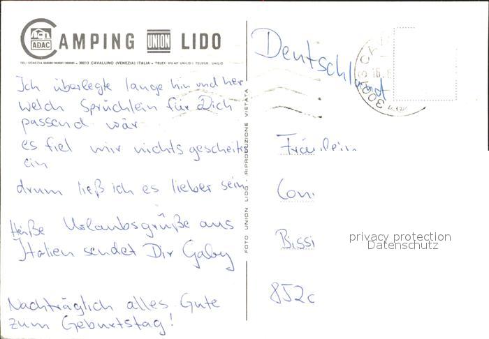old postcard Cavallino Venezia Camping Union Lido Strandpartie Zelte Palazzo postalisch gelaufen Erhaltung siehe scans
