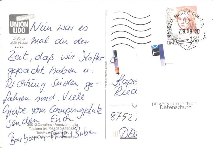 old postcard Cavallino Venezia Vacanze Union Lido Fliegeraufnahme postalisch gelaufen Erhaltung siehe scans